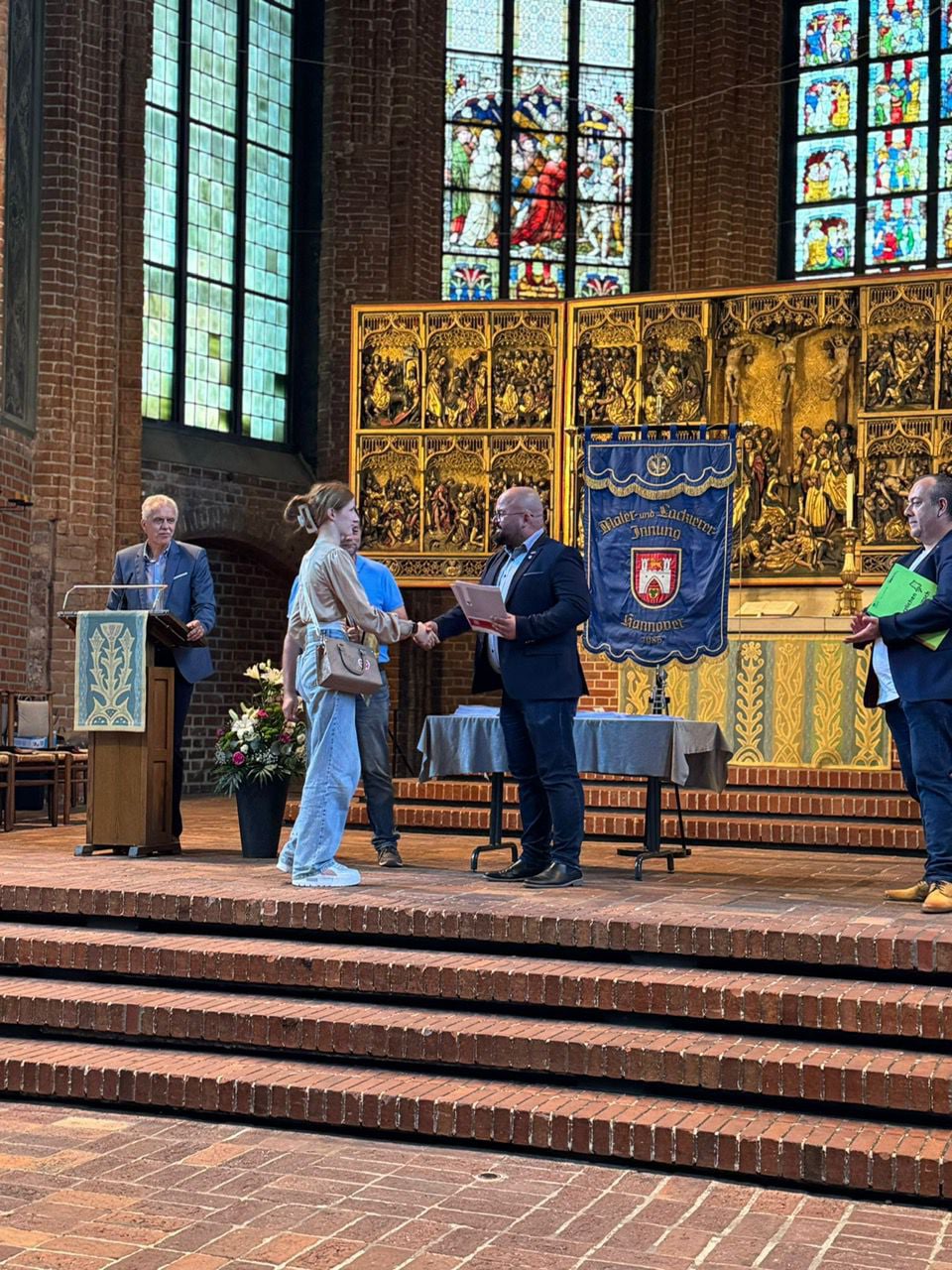 In der eindrucksvollen Kulisse der Marktkirche Hannover fand dieses Jahr am 01.07.2025 erstmalig die Freisprechung der Junggesellen/innen statt. Vor mehr als 250 Gästen konnten die Gesellenbriefe an 75 erfolgreiche Prüflinge durch Obermeister Manuel Kalogeropoulos und Lehrlingswart Holger Zelle übergeben werden. Grußworte der Handwerkspastorin Hille de Maeyer und Marion Haustermann als Koordinatorin der BBS 3 rundeten die sehr feierliche Veranstaltung ab. Mit Orgelmusik und einem kleinen Sektempfang, betreut durch den Vorstand der Innung, fand die würdige Feierstunde einen harmonischen Abschluss. Gratulation - auch an dieser Stelle - nochmals an die erfolgreichen Absolventen.