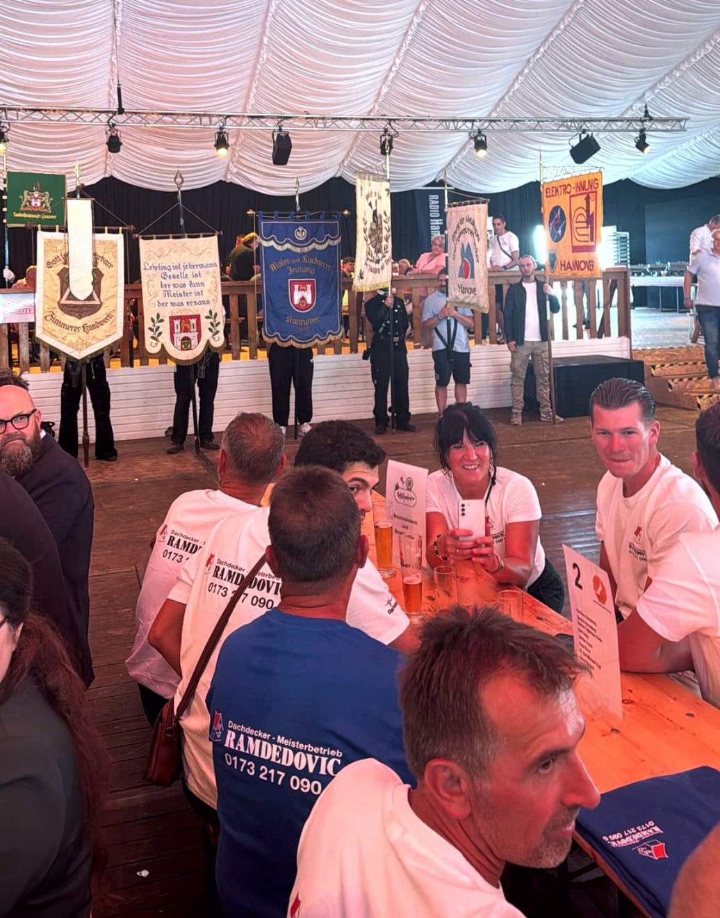 Traditionell war auch dieses Jahr die Innung wieder auf dem Handwerkerabend des Schützenfestes mit der Innungsfahne vertreten. Mehr als 80 Teilnehmer aus unserer Innung hatten einen geselligen Abend mit hervorragender Stimmung im Festzelt im Kreise der hannöverschen Handwerker.
