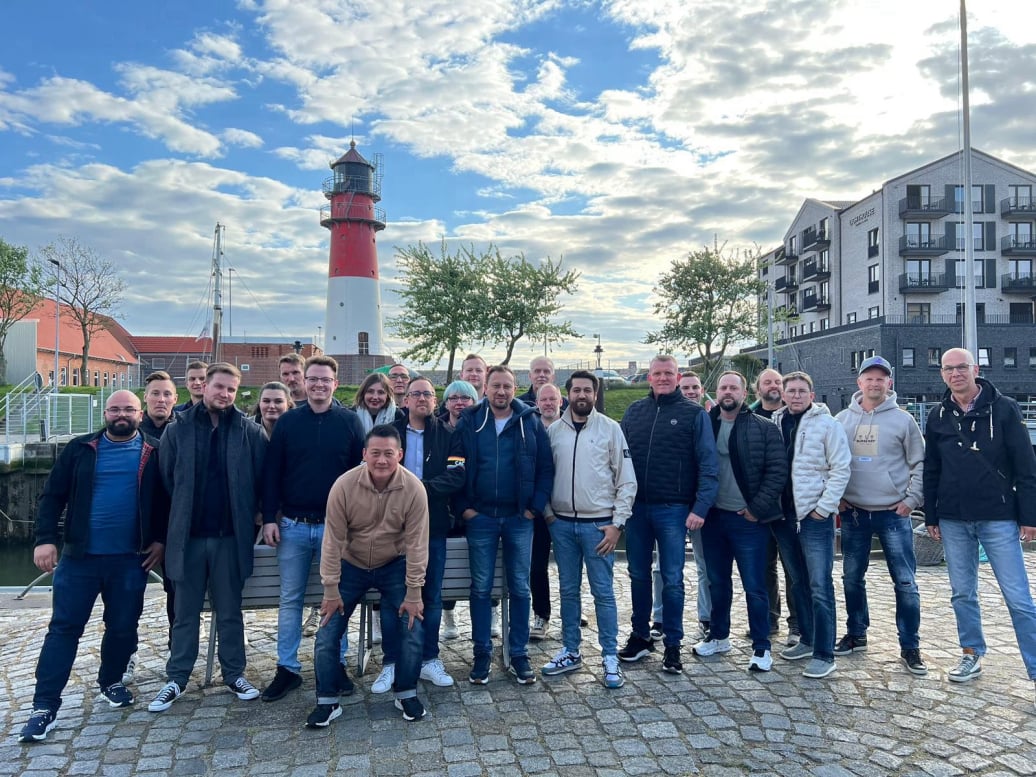 Am 08 und 09. Mai 2025 traf sich die Jungmeistergruppe zu einer Fahrt nach Meldorf ins Flachverblenderwerk von Caparol. 24 Teilnehmer erhielten einen interessanten Einblick in die Herstellung der Meldorfer Fachverblender und konnten auch im Praxisteil selbst einmal die Verblender verkleben. Eine gelungene Fahrt fand dann noch Ihren geselligen Abschluss beim Abendessen in einem Restaurant in Büsum an der Nordsee. Besten Dank an Caparol und Knöner Ullmann, die die Fahrt der Jungmeister dieses Jahr ermöglichten.